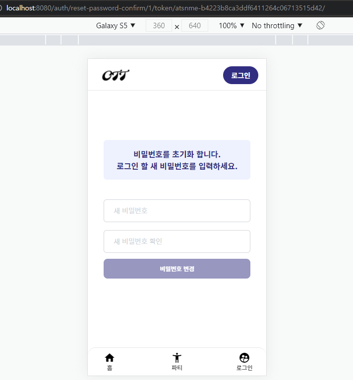 - 받은 메일을 통해 새 비밀번호 설정 페이지(Vue.JS)로 접속