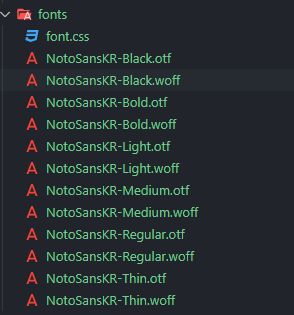 브라우저 별로 otf, ttf, woff 등 다양한 형식의 폰트 파일이 필요합니다. 필요한 만큼 준비합니다.